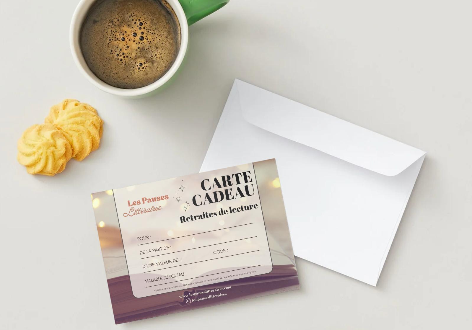 Pour Noël, un anniversaire, la Saint-Valentin, ou simplement pour faire plaisir à un.e passionné.e de lecture, offrez une retraite littéraire avec une carte cadeau Les Pauses Littéraires.